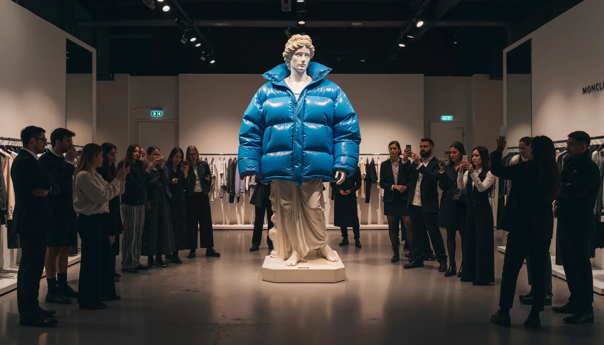 Functional foam furniture blurs the line between utility and art. Display cases shaped like geometric crystals, seating formed from organic shapes, or checkout counters doubling as brand sculptures add a special charm to the interior. This atmosphere is especially beneficial for clothing, footwear, and accessory stores: after trying something on, the customer will definitely want to take a photo in the sales area.